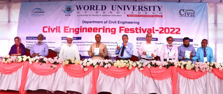“Civil Engineering Festival 2022” has organized by the department of Civil Engineering of World University of Bangladesh which was inaugurated by Professor Dr. Md. Habibur Rahman, Vice-Chancellor, Dhaka University of Engineering & Technology as Chief Guest on 09 September 2022 while Professor Dr. Abdul Mannan Choudhury, Vice Chancellor, World University of Bangladesh; Md. Shafiqul Islam, Project Director, Padma Multipurpose Bridge Project; Morsheda Choudhury, Treasurer, World University of Bangladesh; Dr. Musfiq Mannan Choudhury, Secretary, Board of Trustees, World University of Bangladesh and Professor AFM Abdur Rauf, Dean, Faculty of Science and Engineering, World University of Bangladesh attended the fest as Special Guest. The fest has presided over by Professor Dr. SM Shirazi, CEng, Head, Department of Civil Engineering, World University of Bangladesh.