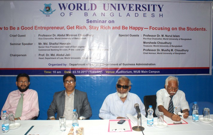 Department of Law and the Department of Business Administration, World University of Bangladesh (WUB) organized a seminar on ‘How to be a good entrepreneur and get rich, stay rich and be happy - focusing on the students’ on 3rd