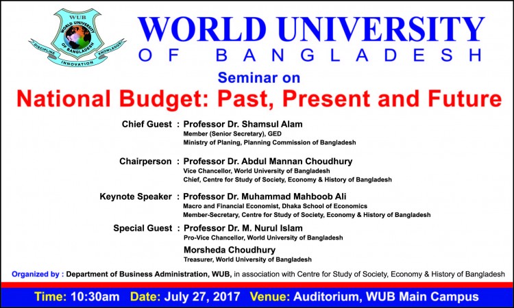 Organizer : Department of Law, World University of Bangladesh (WUB) Place : Auditorium, World University of Bangladesh Main Campus, Plot # 3/A, Road-4, Dhanmondi,